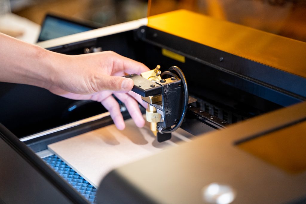 If you are planning to start or already own a personalized gifts business, such as customized accessories, phone cases, or wedding favors, the beamo is an excellent fit for your studio. FLUX beamo features a pre-assembled metal body and acrylic lid, measuring 24 by 17.5 inches. Its modest build fits perfectly on any desk, while still offering a large cutting space of letter size (A4) for its powerful 30W CO2 laser. Compared to traditional laser cutting machines, beamo’s compact size provides you with more room for creativity. Essential components like the water cooling system and exhaust system are all integrated into beamo’s small footprint, ensuring exceptional laser engraving performance.